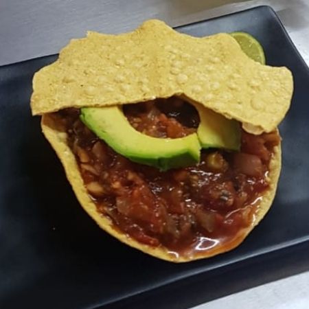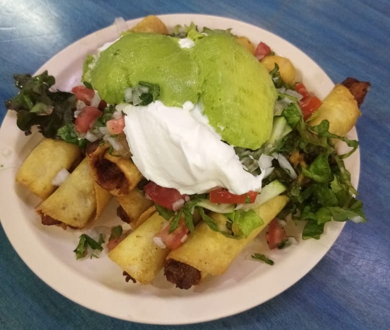 Con pico de gallo, crema y aguacate.