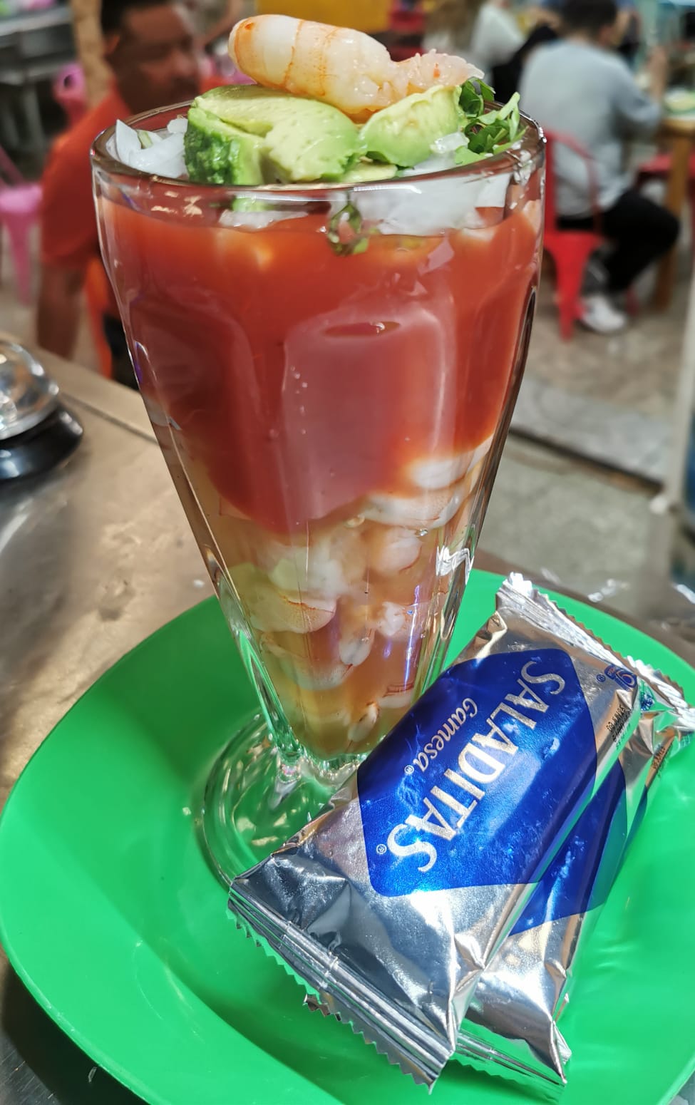 Descripción Vaso 16oz: 2 camarones p/Pelar, Trozo de Pescado, Ostión, 3 Mejillones, 2 Chirla, 1 Chocolata.
