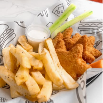 Deliciosos nuggets de pollo acompañados con papas a la francesa, 7 Pzas.