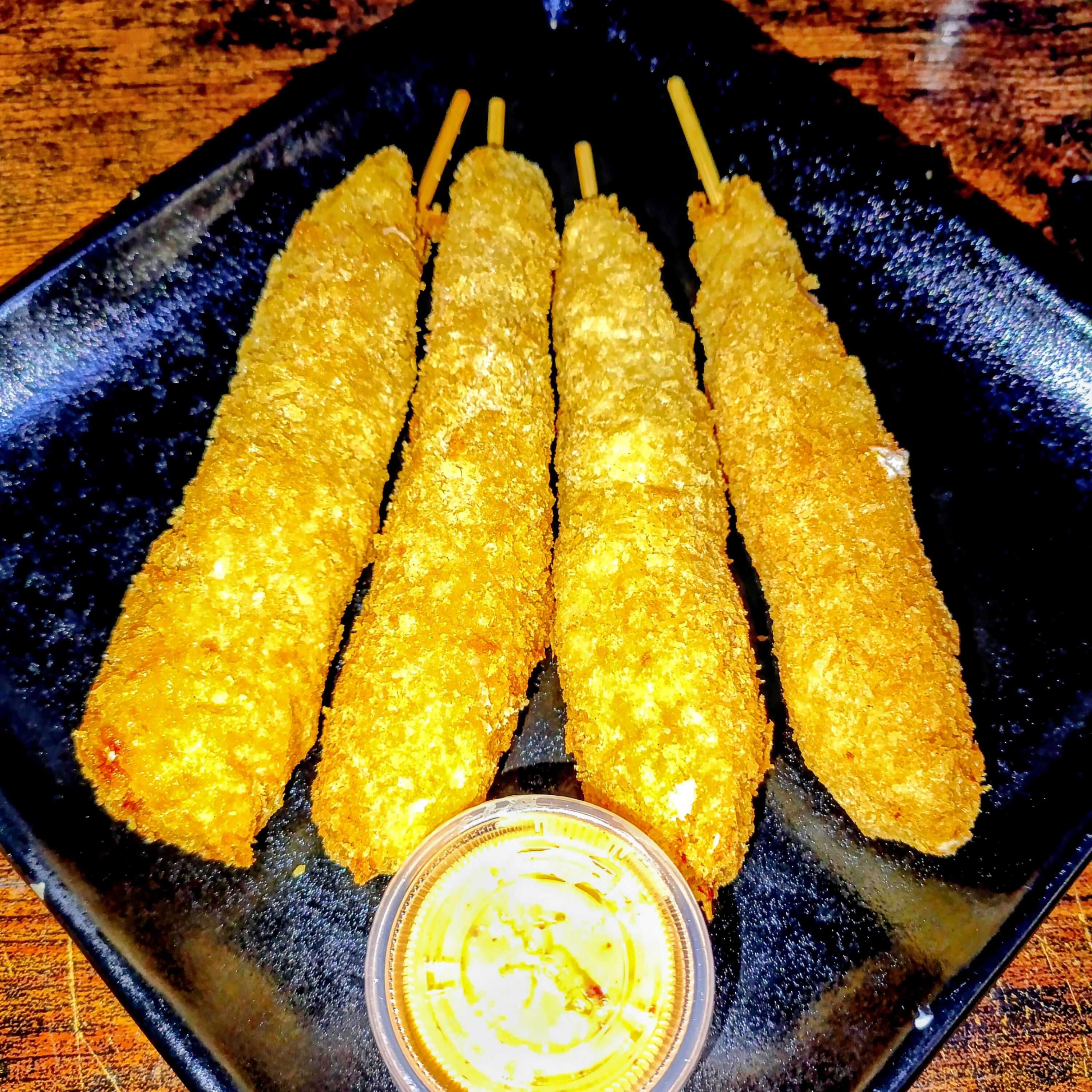 Empanizado. Camarón empanizado, surimi, queso manchego, pimiento y aguacate.