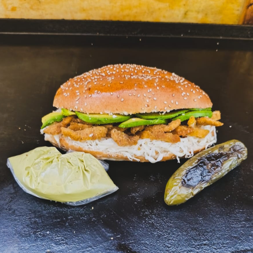 Tierna milanesa de pollo empanizada al momento y crujiente, queso Oaxaca fundido y sedoso, cremoso aguacate, un toque de vibrante salsa verde casera y el picante ahumado de nuestro chile toreado fresco. ¡Una explosión de sabor!