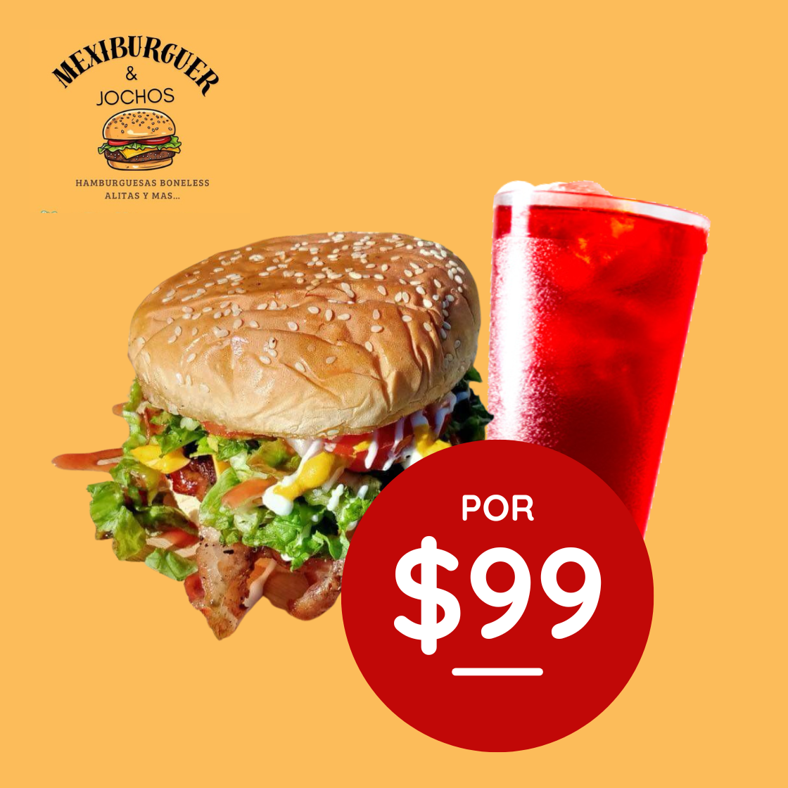 Hamburguesa Amigable + 1 Agua Fresca