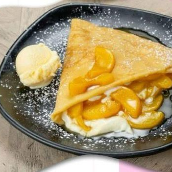 Crepa con duraznos y base de lechera.