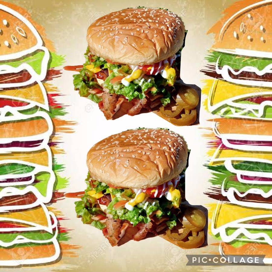 2 hamburguesas especiales (pan grande parrillero, carne 120 gramos , queso amarillo,jamon, tocino, jitomate, cebolla, pepinillos, aderezos).