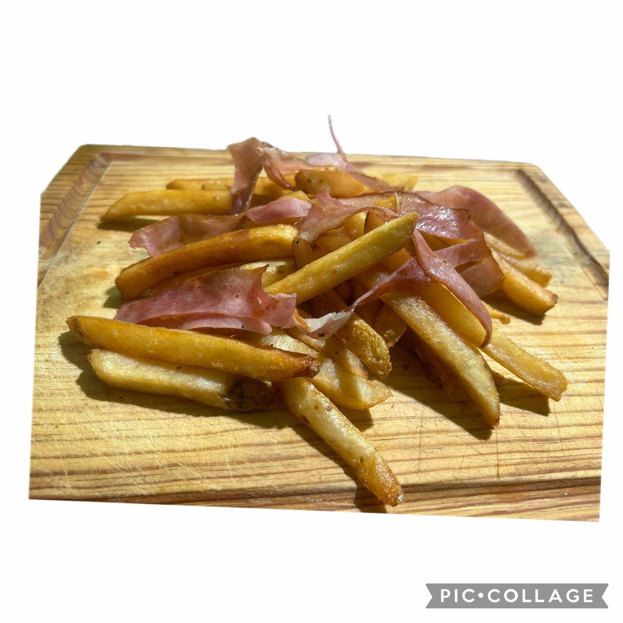 200 grs de papas y tocino.