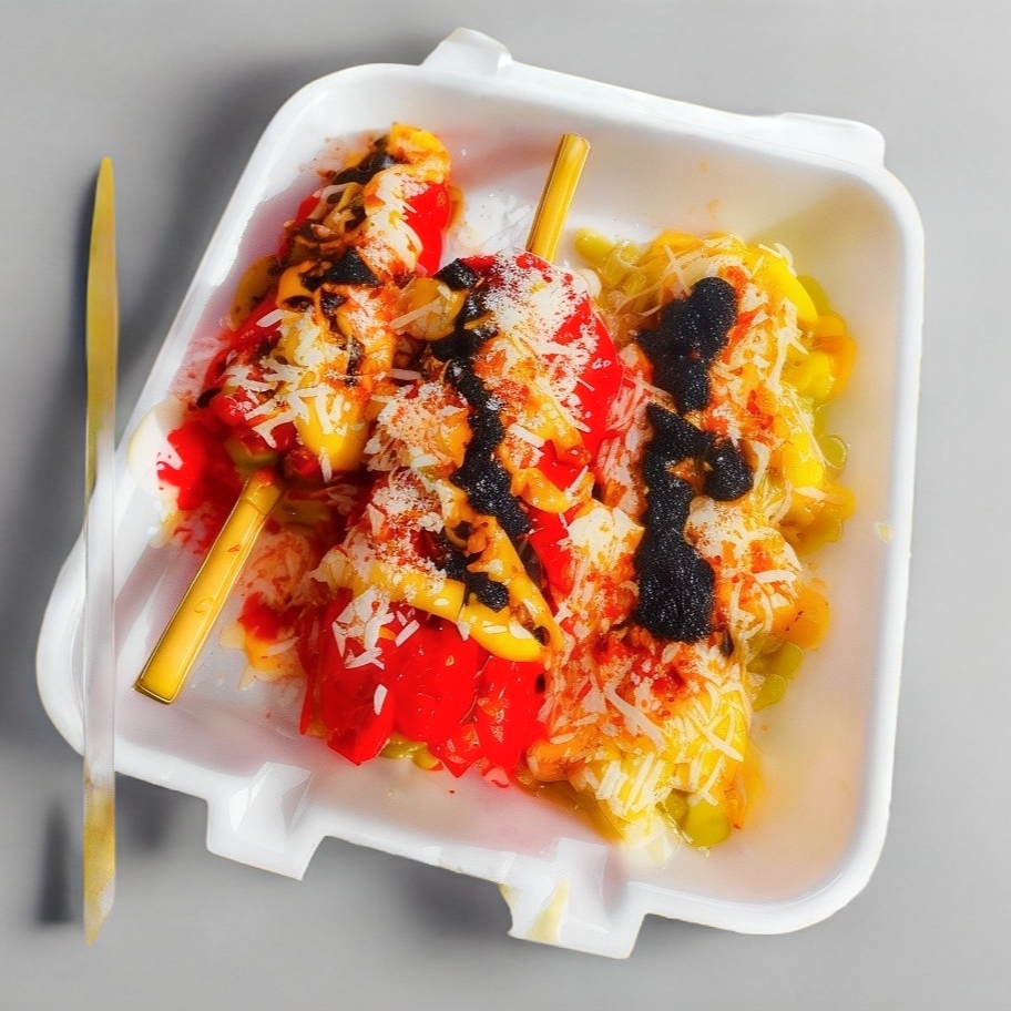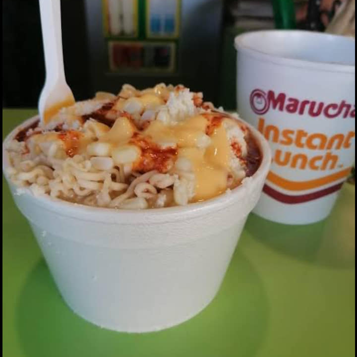 Sopa Maruchan® (sin caldito), copeteada con delicioso esquite, y aderezado con tus ingredientes, aderezos y topping favoritos