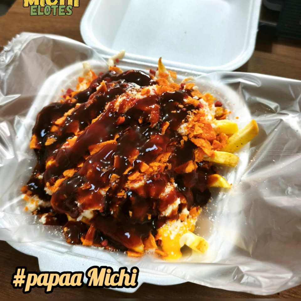 Para los amantes del cheddar , 300gr de esquite con mantequilla, mayonesa, delicioso queso blanco y queso cheddar, adiciona mas de 10 toppings y salsas distintos! y por nuestra cuenta corre una cama completa de chetos torciditos!