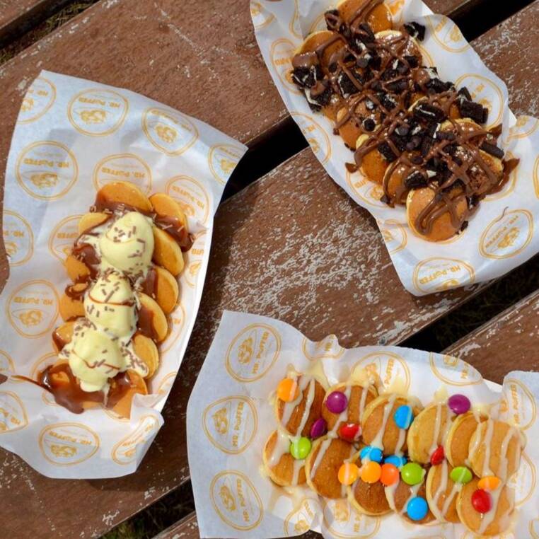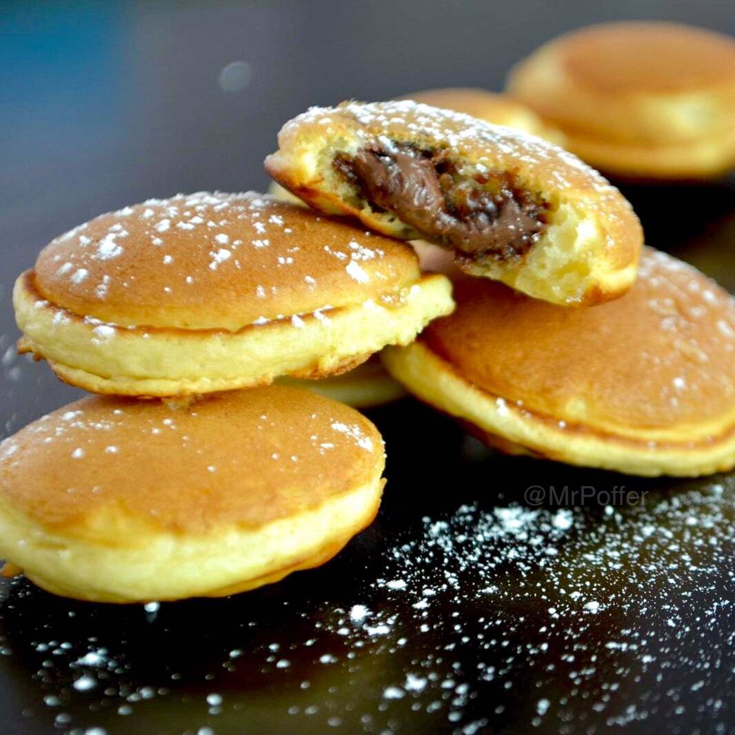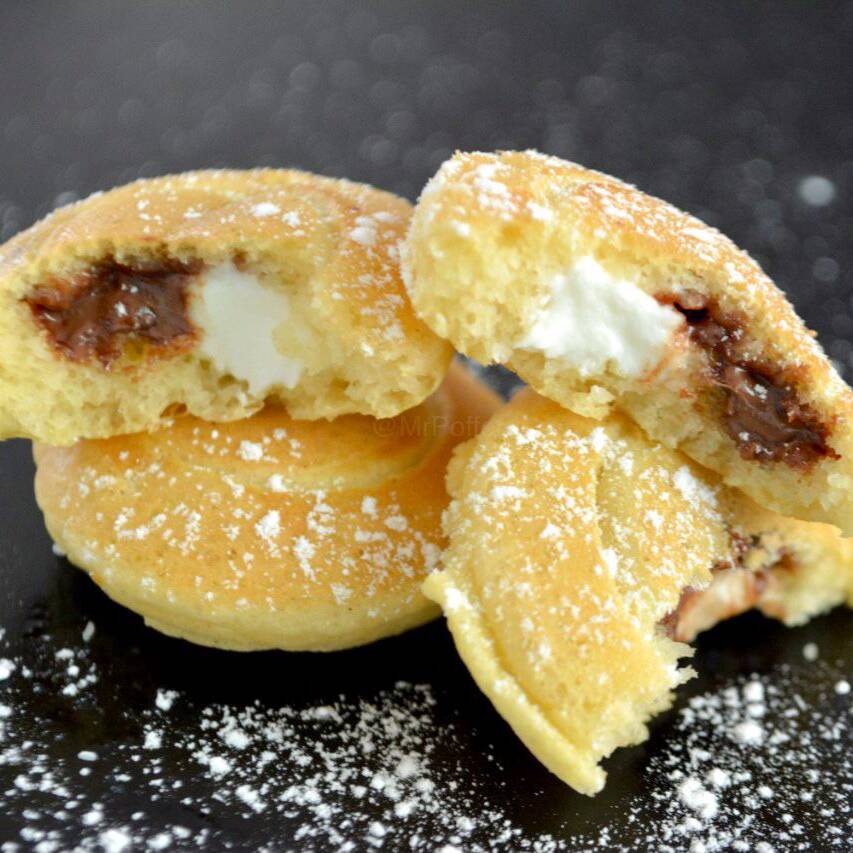 30 piezas de mini hotcakes rellenos de queso Philadelphia y Nutella