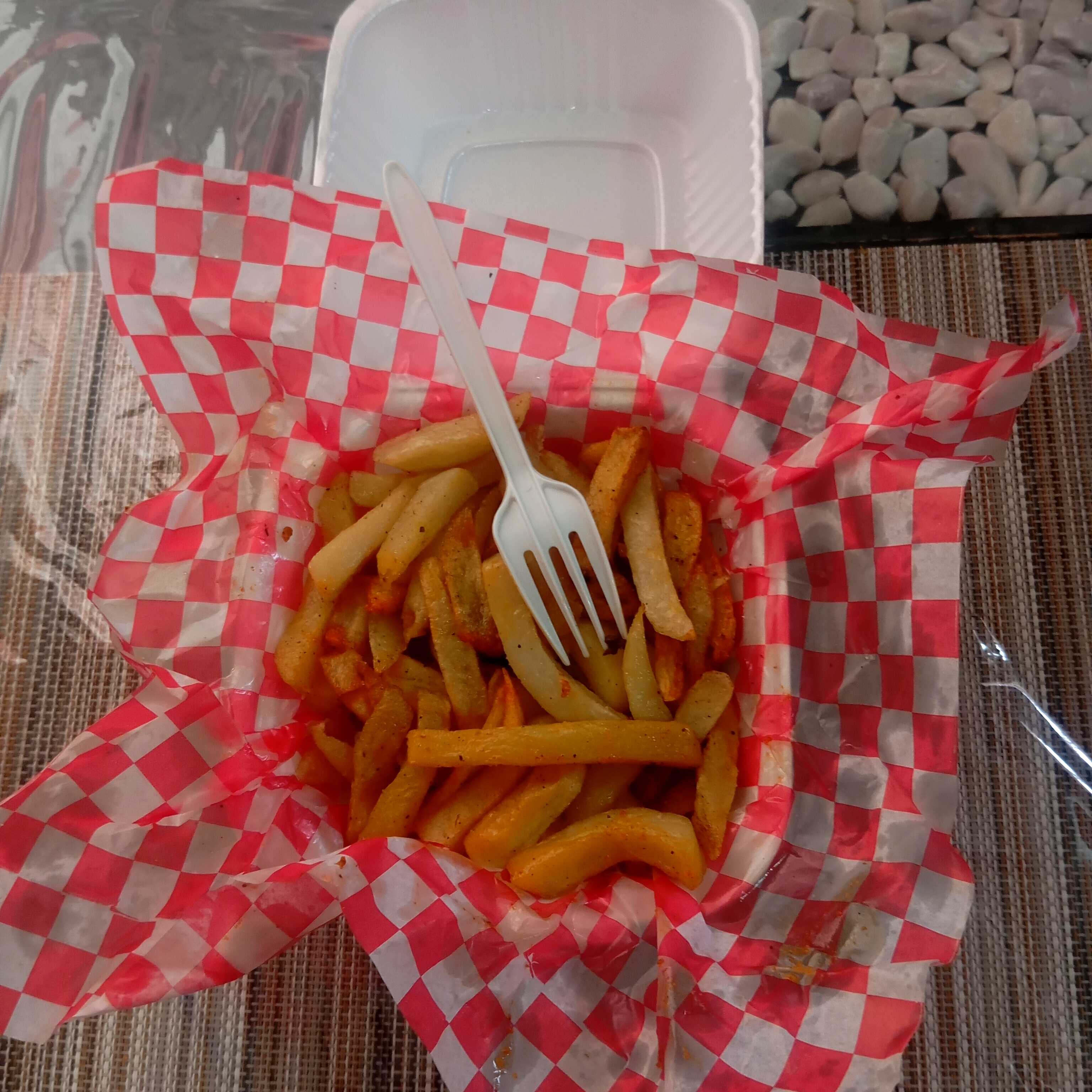 Charola grande de papas a la francesa (800 gr.) con un sabor a elegir: Cheeetos torciditos, Runners, Ruffles de queso, Chips Jalapeño, Toreadas Habanero, Sabritas adobadas, Sabritas Crema y especies, Takis Fuego, Takis blue heat, Doritos pizzerola, Doritos xtra flamin hot, Doritos Incognita, Doritos Nacho.