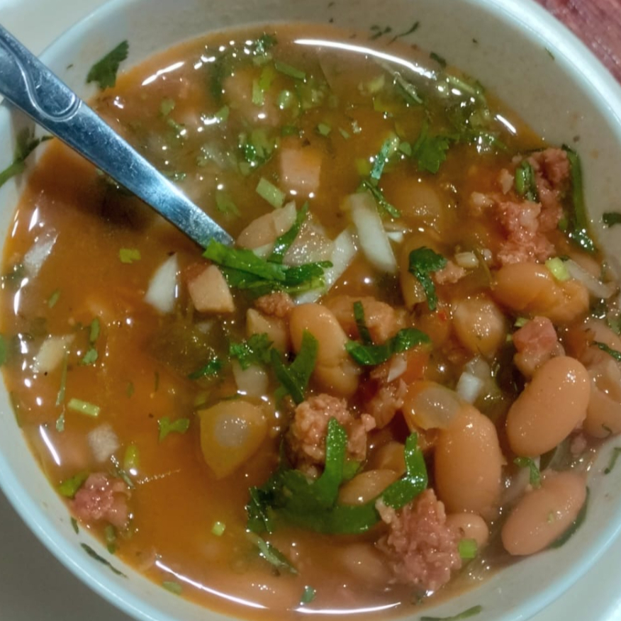 frijoles peruanos refritos con chorizo tocino jitomate cebolla