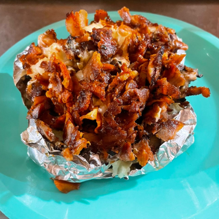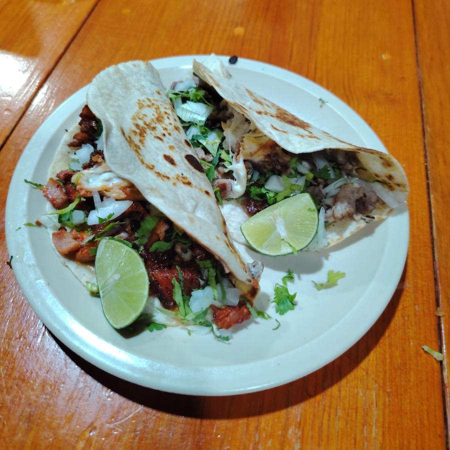 Pastor, tocino, morrón, cebolla y queso.incluye tortillas