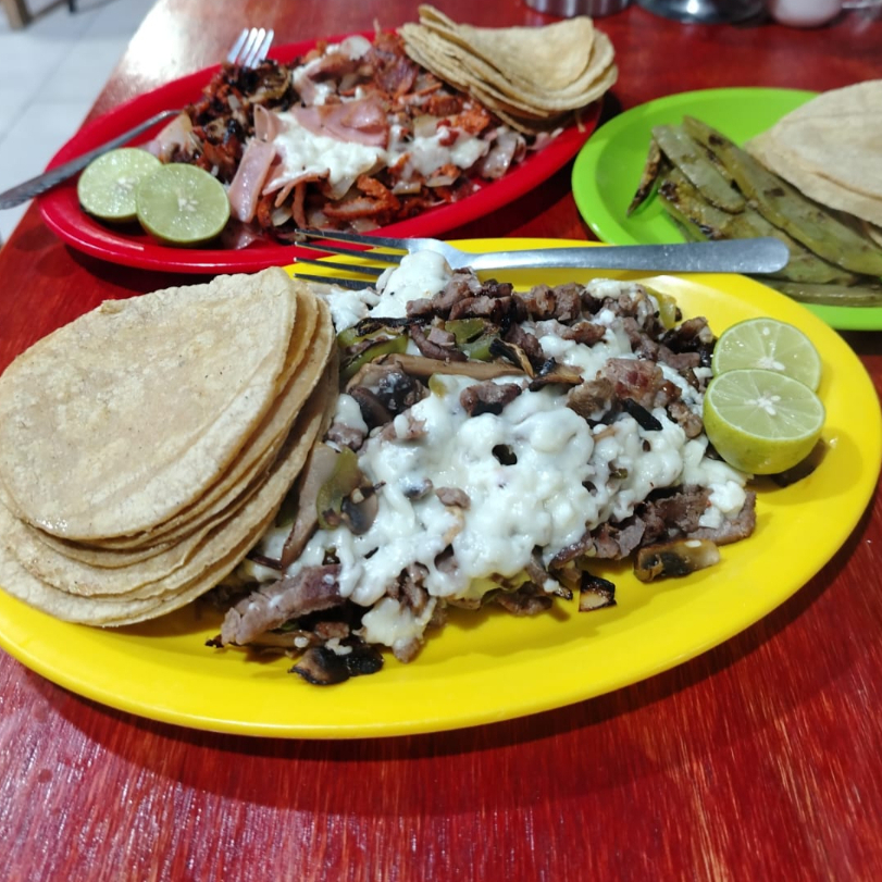 carne a elegir entre suadero pastor bistec arrachera costilla y llevan quesoso