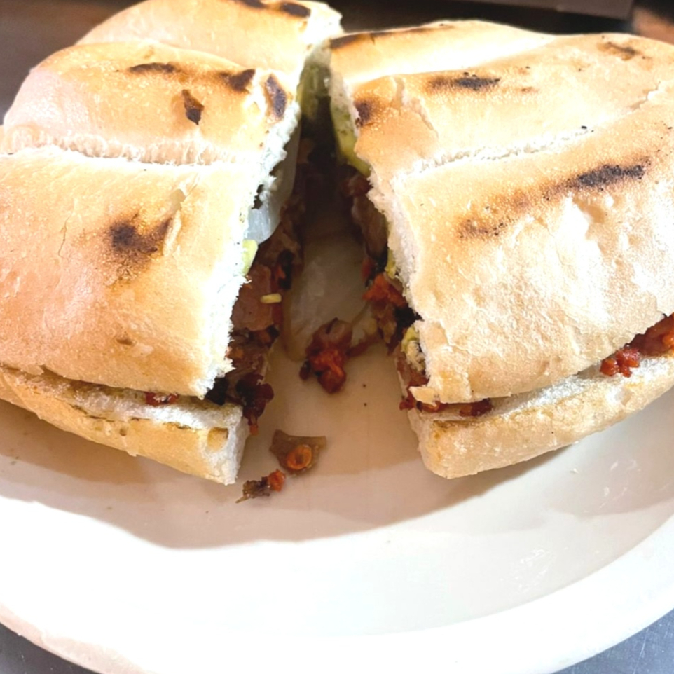 Mantequilla, carne a elegir entre pastor, arrachera, bistec, campechana o costilla queso fundido