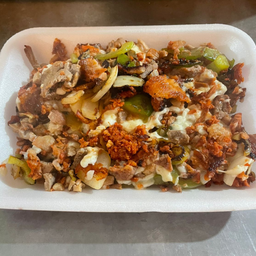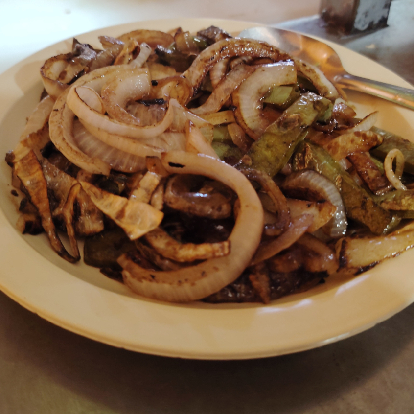 Morrón, cebolla, bistec, champiñón y queso incluye tortillas.