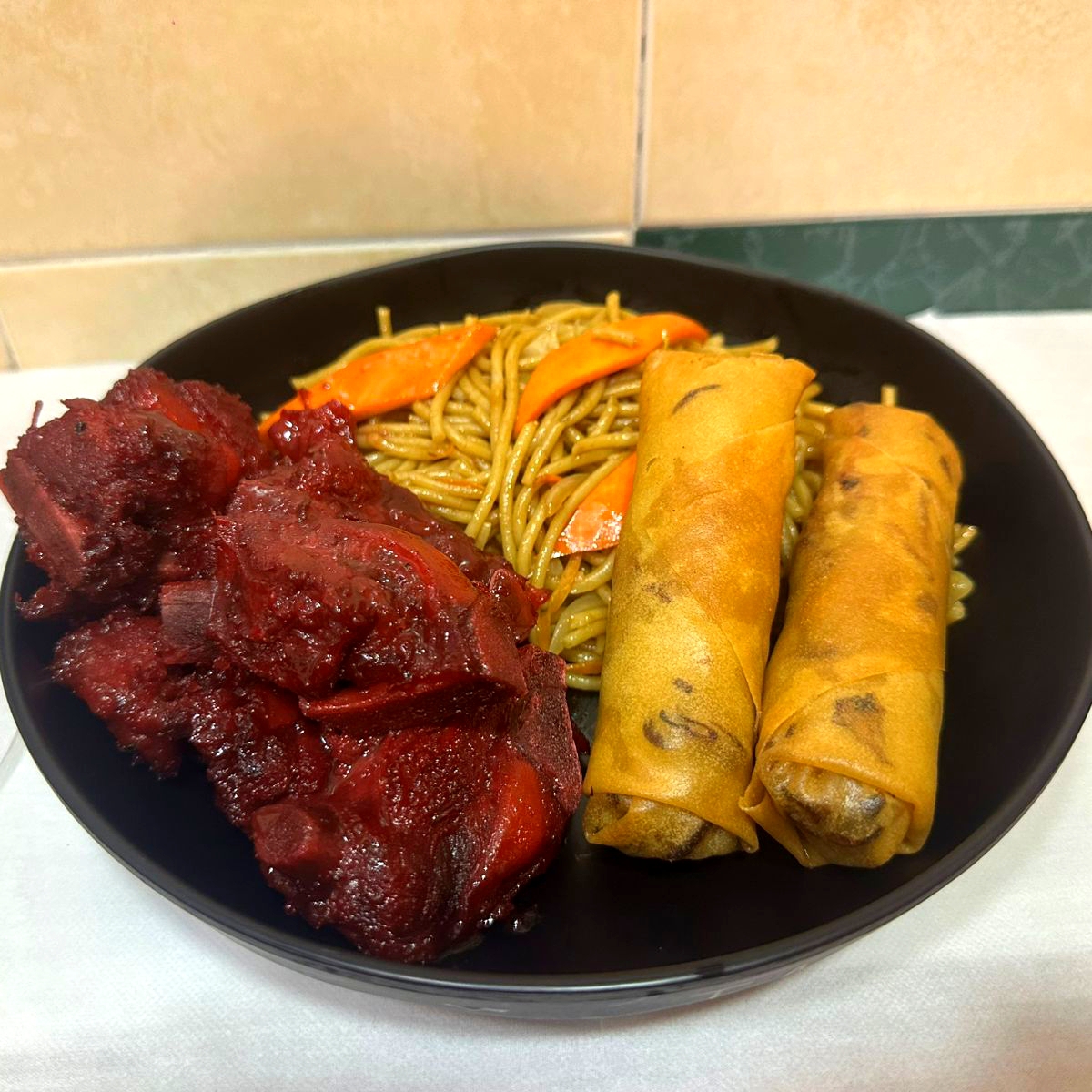 Tallarín o arroz y dos guisados de su eleccion
