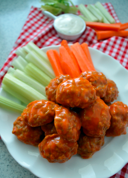 Boneless acompañados de tu salsa preferida y papas a la francesa o gajo