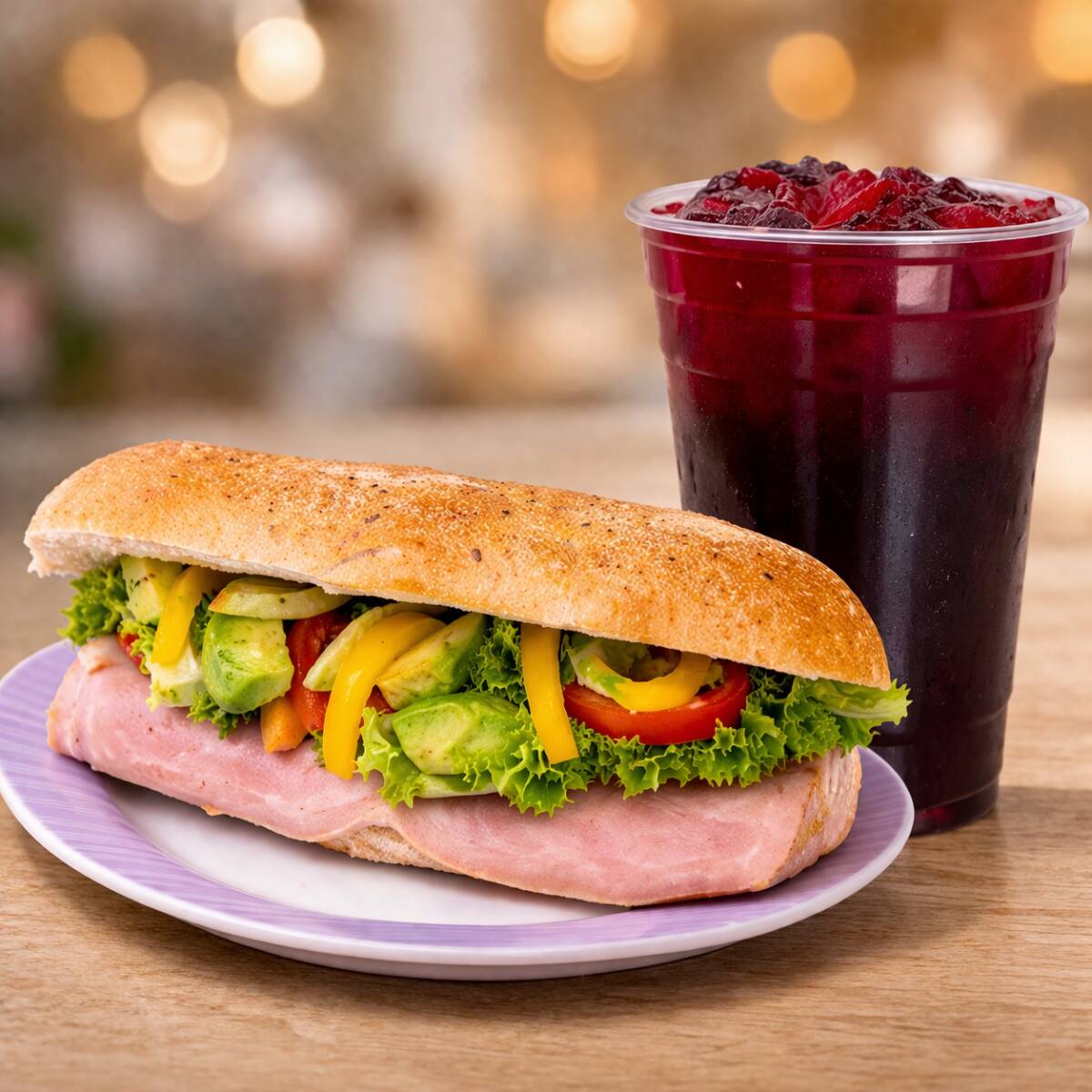 Baguette De Jamón*1 + Agua De Jamaica*1