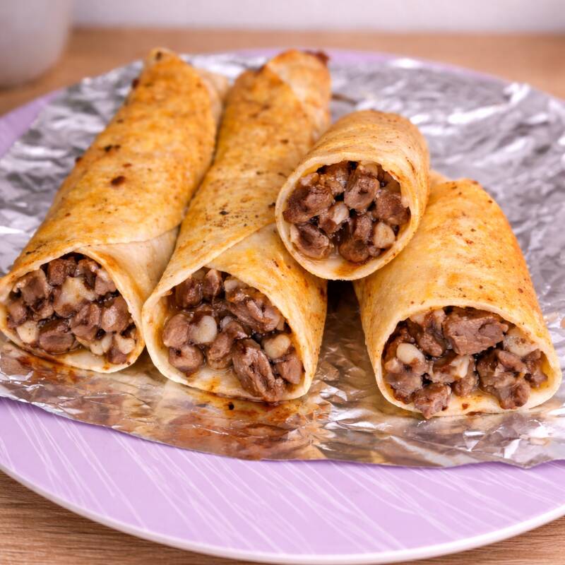 3 Burritos con tortilla de 13cm, con frijoles, queso, salsa, aguacate y proteína
