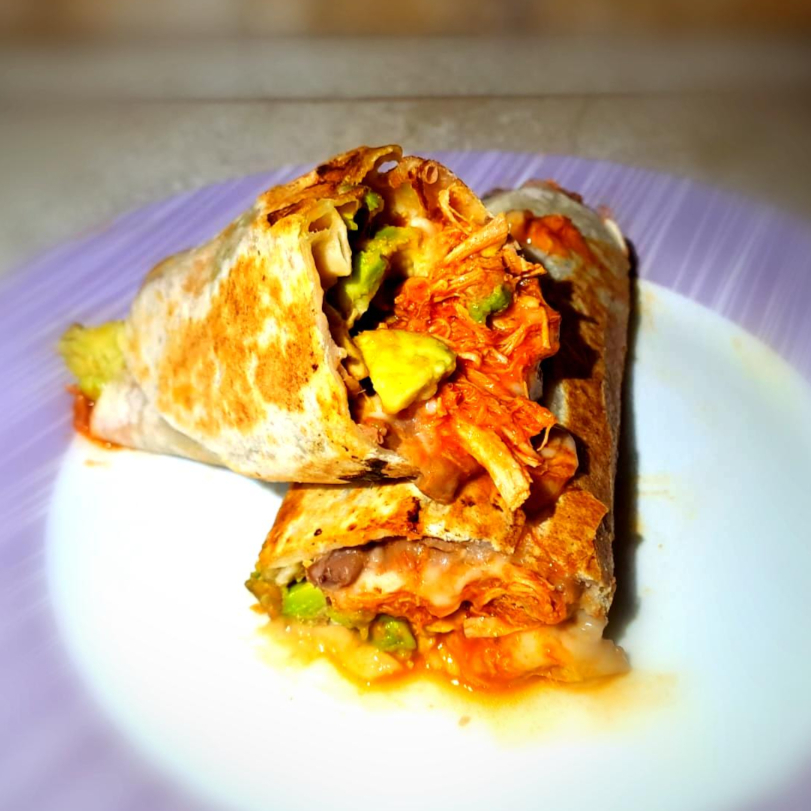 Burrito con tortilla de 25cm, con frijoles, queso, salsa, aguacate y proteína