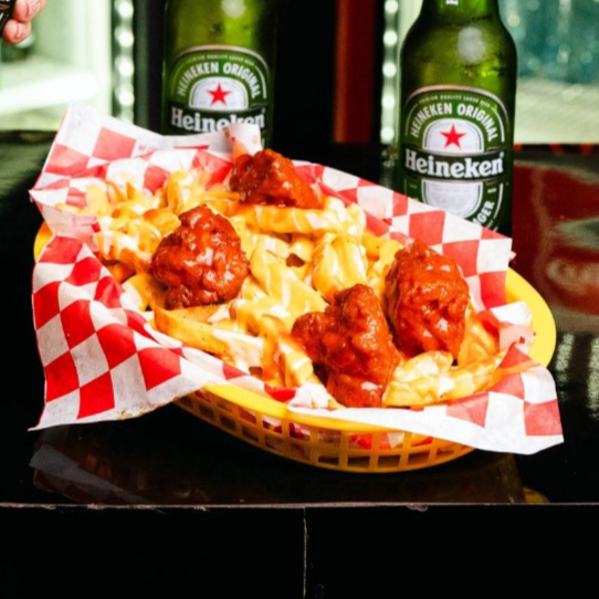 ¡Una locura de sabor en cada bocado! Disfruta de una base de papas a tu elección (gajo o a la francesa), bañadas en cremoso aderezo de queso. Encima, una porción de boneless crujientes, bañados en la salsa de tu elección para darles ese toque explosivo. Y para rematar, un extra de aderezo ranch y más salsa que lo hacen aún más jugoso y adictivo. ¡Una combinación brutal que te hará salivar desde el