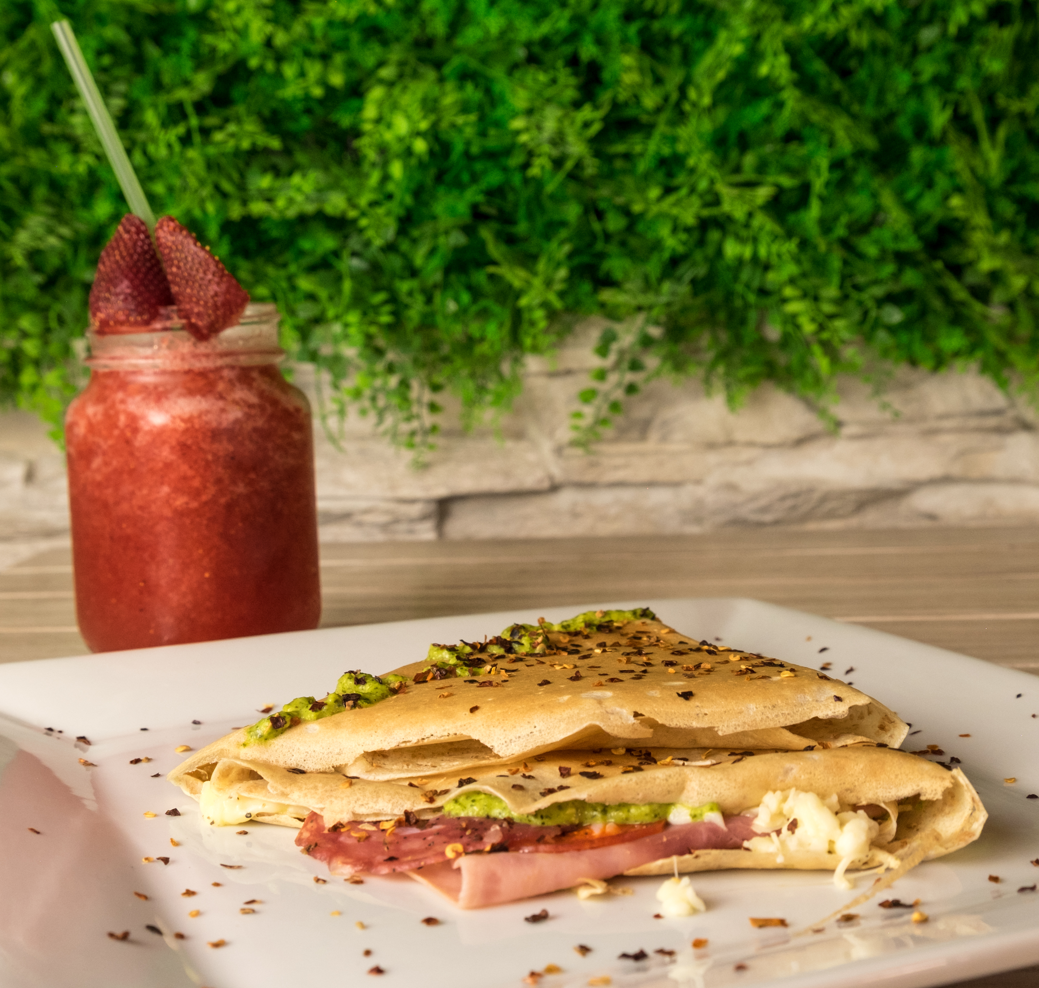 Crepa hecha con nuestra mezcla de quesos (manchego, cheedar y oaxaca), queso crema y jamón de pavo.
