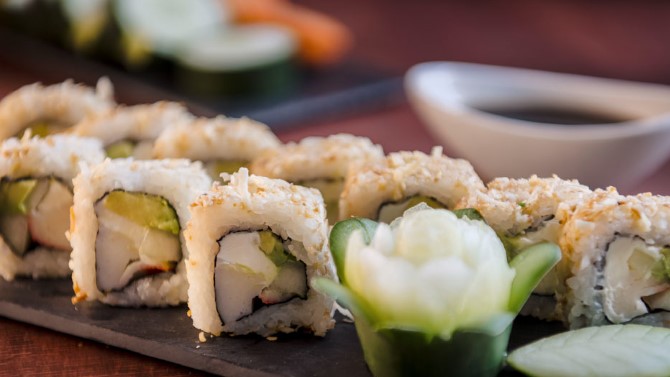 XF: Mango, aguacate, salsa de anguila y coco tostado XD: Pepino, queso crema y surimi empanizado