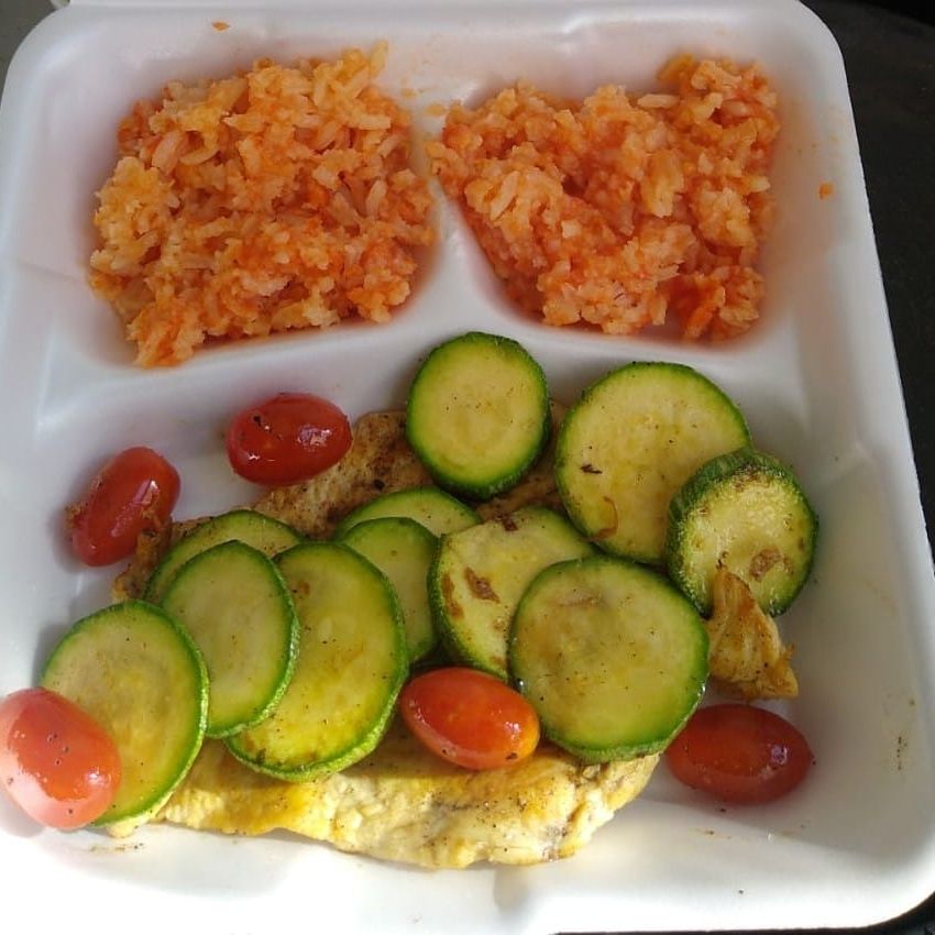 Pechuga de pollo asada, con vegetales y guarniciones del día (2) Ésta es la opción pefecta si buscas mantener un régimen alimenticio de 1,500 kcal diarias