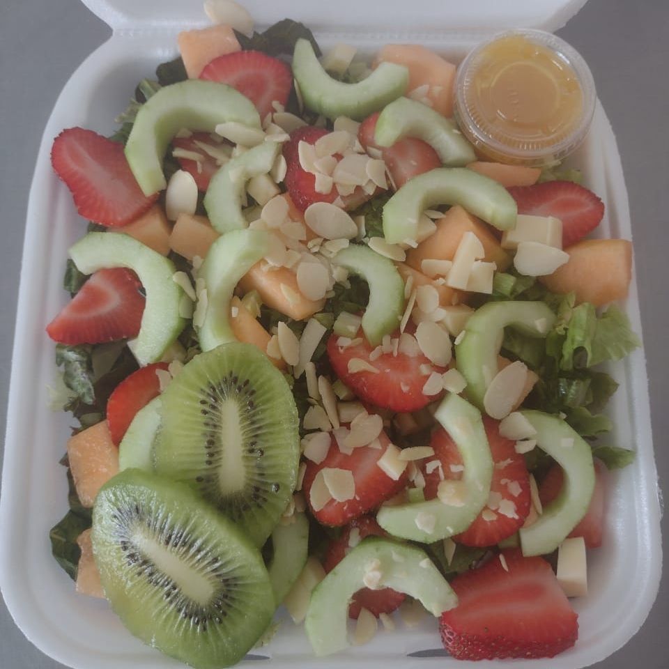 Mezcla de lechuga con espinaca, melón, sandía, manzana, fresa y arándanos. Una dulce opción para tu paladar.