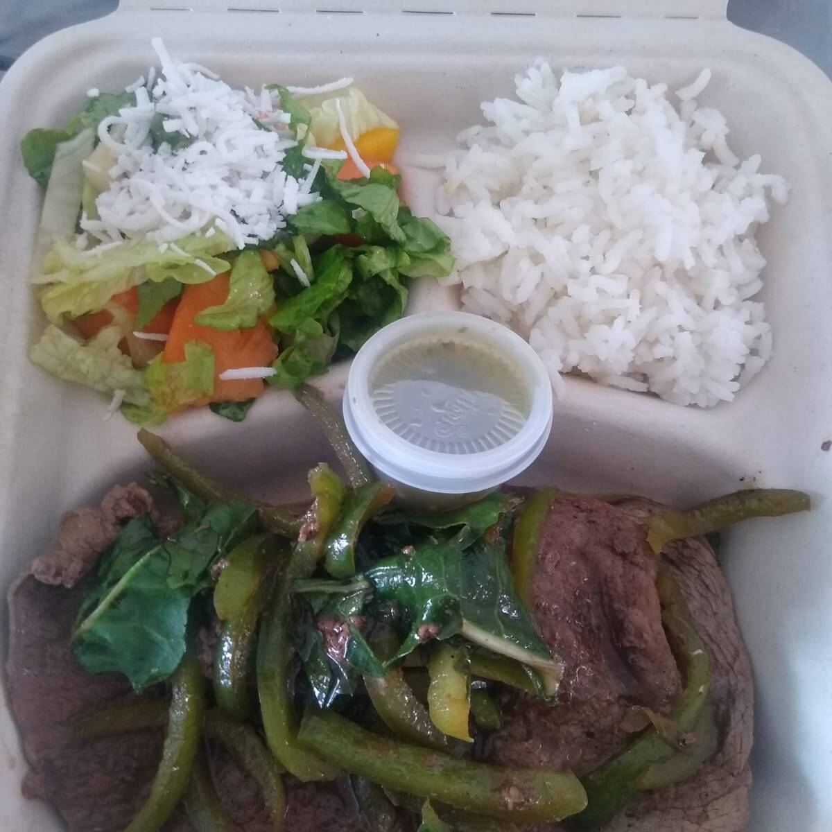 Filete de res asado con vegetales, acompañado de guarniciones del día (2) con limón, salsa y tortillas. Ideal para quienes están siguiendo un régimen alimenticio de 1500kcal