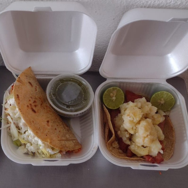 1 Quesadilla de tortilla de maíz hecha al momento, con guisados a elegir, pollo, carne, champiñones, papas, chicharrón prensado. Todas llevan queso.