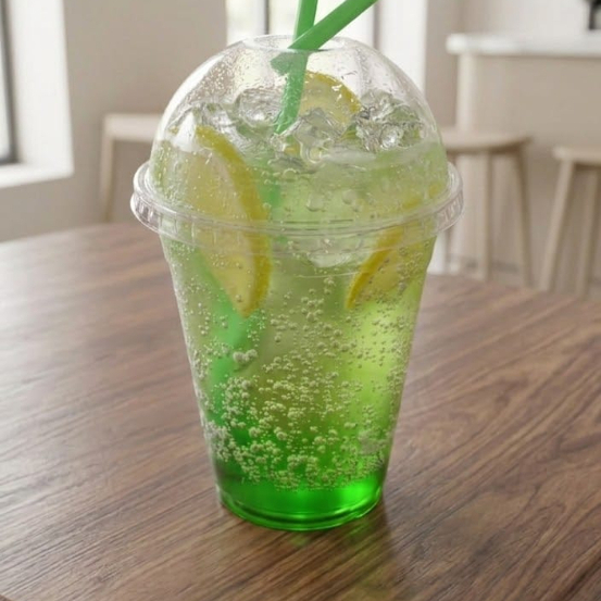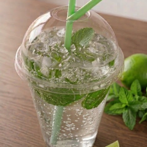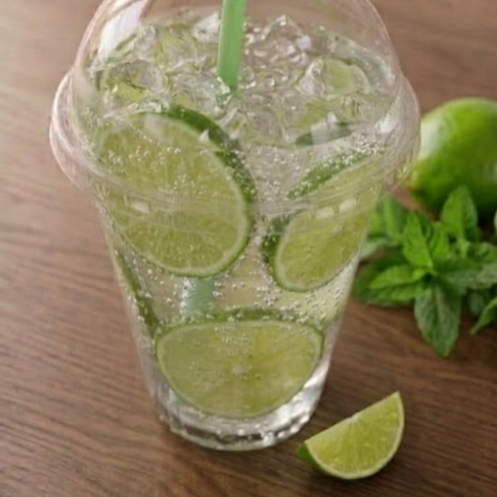 Jarabe de lima limon, hielos, agua mineral, rodaja de limon