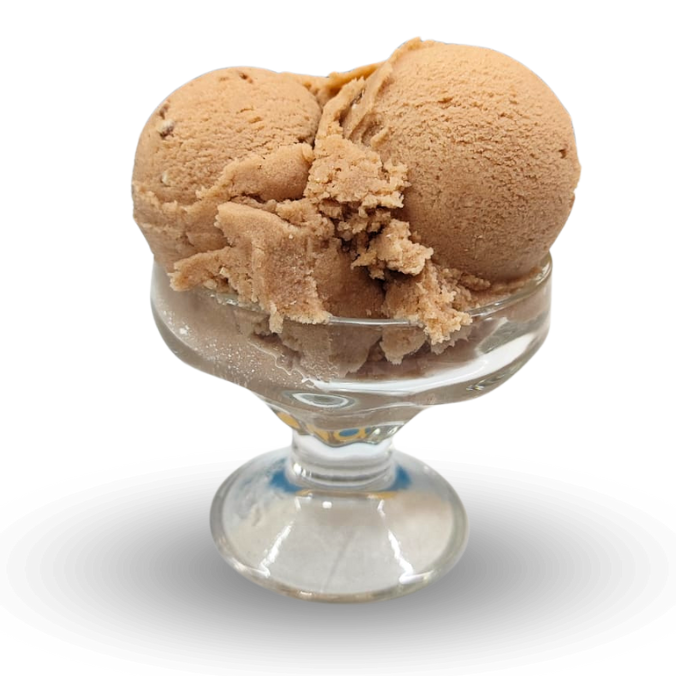 Helado artesanal a base de leche y tradicional cajeta con trozos de nuez