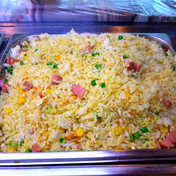 Arroz frito con pequeños trozos de zanahoria.