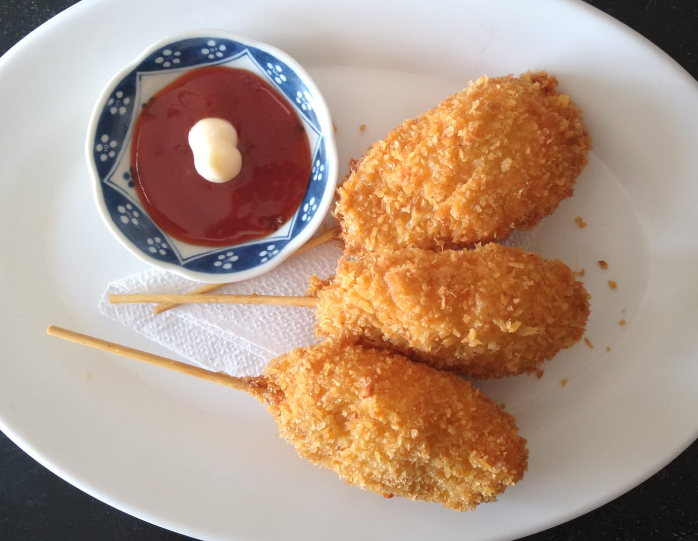 3 DELICIOSAS BROCHETAS CON EL TRADICIONAL EMPANADO, ACOMPAÑADAS DE NUESTRA SALSA TONKATSU