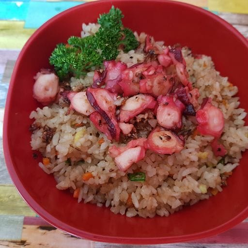 ARROZ FRITO CON VERDURAS, PULPO Y AJO