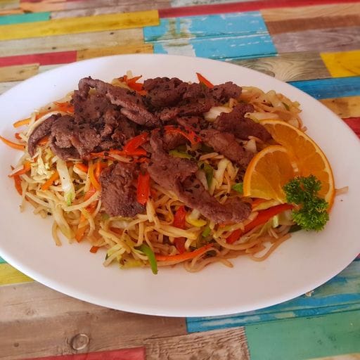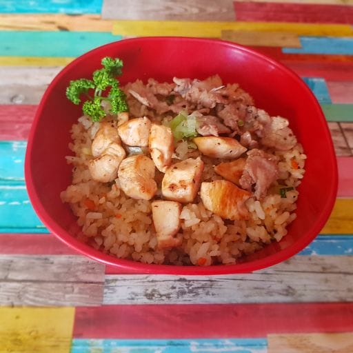 ARROZ FRITO CON VERDURAS, POLLO Y RES