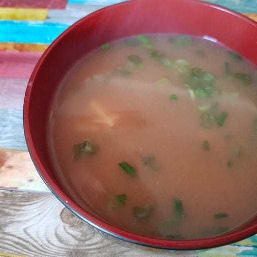 SOPA TRADICIONAL CON EL SABOR DE LA PASTA DE SOYA ACOMPAÑADA DE TOFU Y ALGA