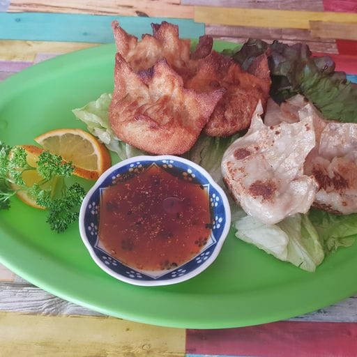 (6 PZAS)PEQUEÑAS Y DELICIOSAS EMPANADAS RELLENAS DE CARNE DE CERDO Y VERDURAS, CON UN TOQUE DE AJO Y SOYA