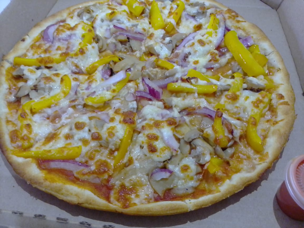 Champiñones, pimiento verde, cebolla y extra queso.