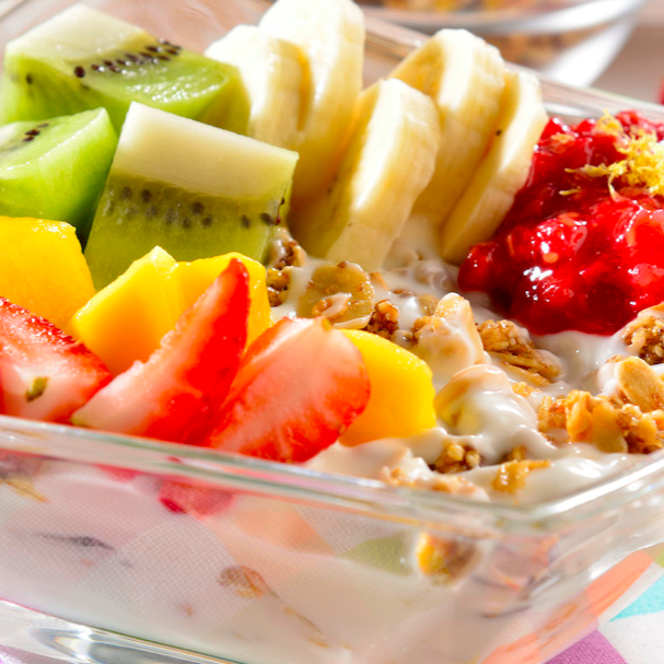 Coctel de frutas con granola y kefir