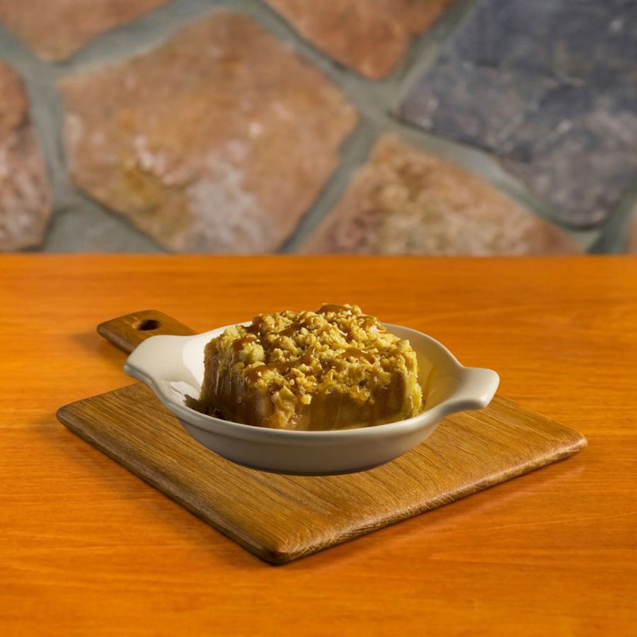 Corteza de hojaldre caliente con relleno de manzana con un toque de canela. No incluye helado.