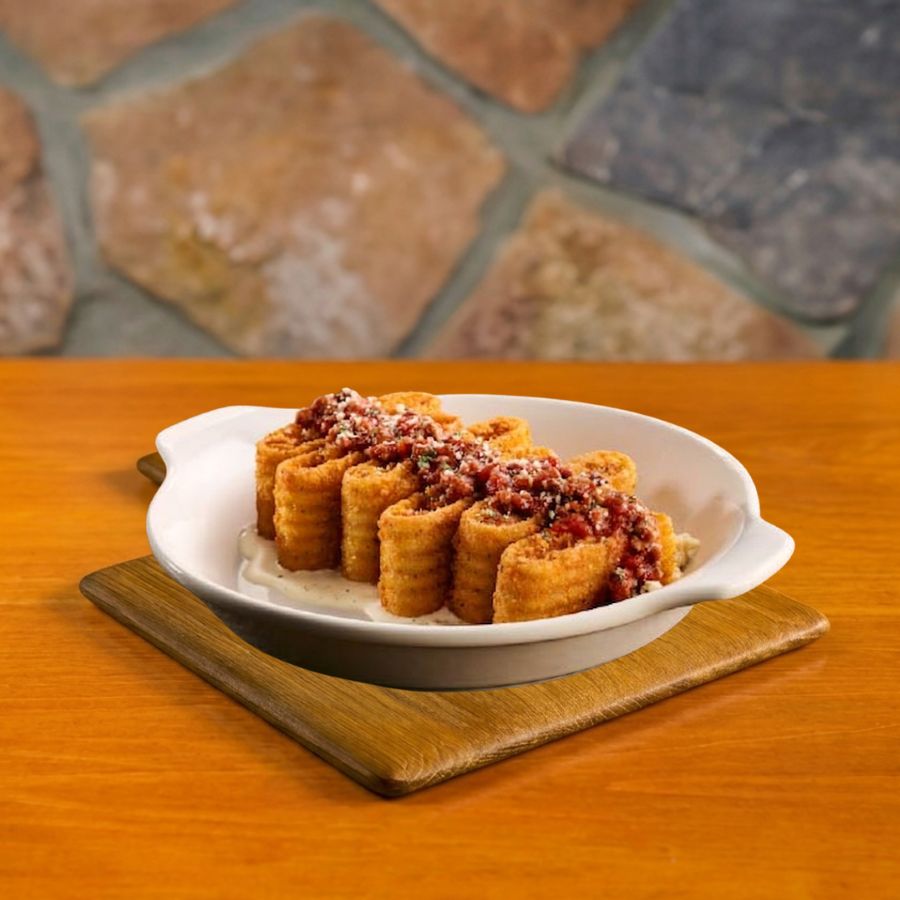 Incluye Panolis + sopa o ensalada. Deliciosos ravioles rellenos de queso (9pzas, 220g), cubiertos con una salsa marinara o salsa de carne y quesos italianos derretidos.