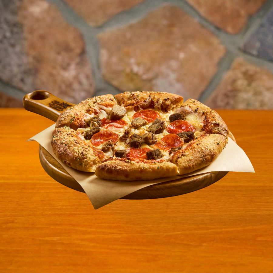 Base de Salsa Bolognesa con mezcla de quesos italianos, pepperoni, salchicha italiana y trozos de albóndigas. (6 porciones, 280 gr de masa)