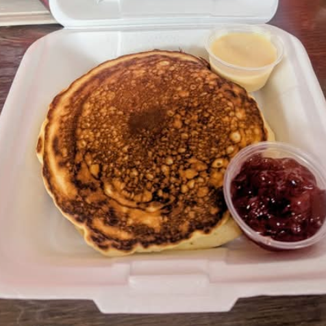 2 hot cakes grandes esponjosos y suaves. acompañados de maple o mermelada o lechera o cajeta.