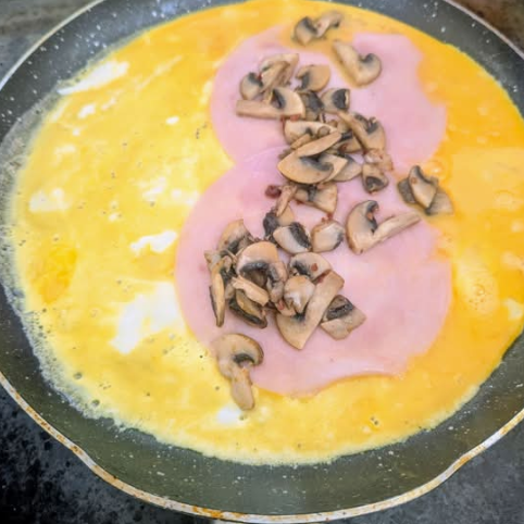 Omelette (3 huevos) relleno de champiñones salteados y mezclas de queso. acompañado con frijoles, tortillas o bolillo y salsa (receta secreta de la casa).