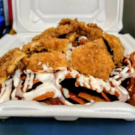 Tortilla de harina gigante, con frijoles y lechuga, con el ingrediente especial: milanesa empanizada y mezcla de quesos acompañada con papas a la francesa. el toque casero que se nota. con complementos para papas y salsa casera.