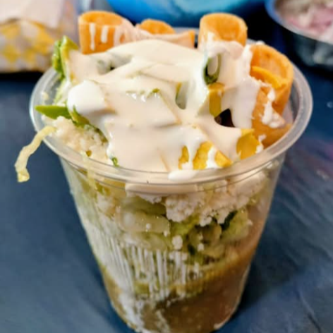 4 flautas de pollo en vaso con salsa verde o roja. y complementos: lechuga, queso, crema y aguacate. sabores que conquistan desde el primer bocado.