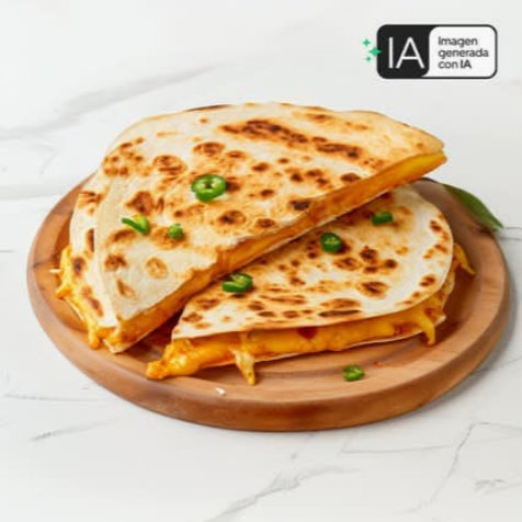 Tortilla de harina con mezcla de quesos. doblada a la mitad.