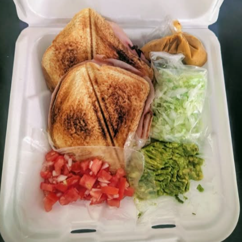 Dos sándwiches a la plancha rellenos de jamón y mezcla de quesos acompañados de guacamole, lechuga, pico de gallo y salsa (receta secreta de la casa).