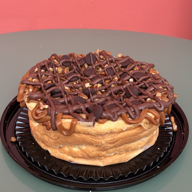 1 pza, Cremoso cheesecake con topping de chocolate, caramelo y nuez tostada. Una explosión de sabor dulce y crujiente que no querrás compartir.